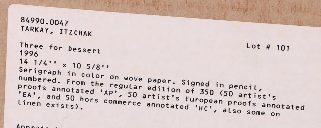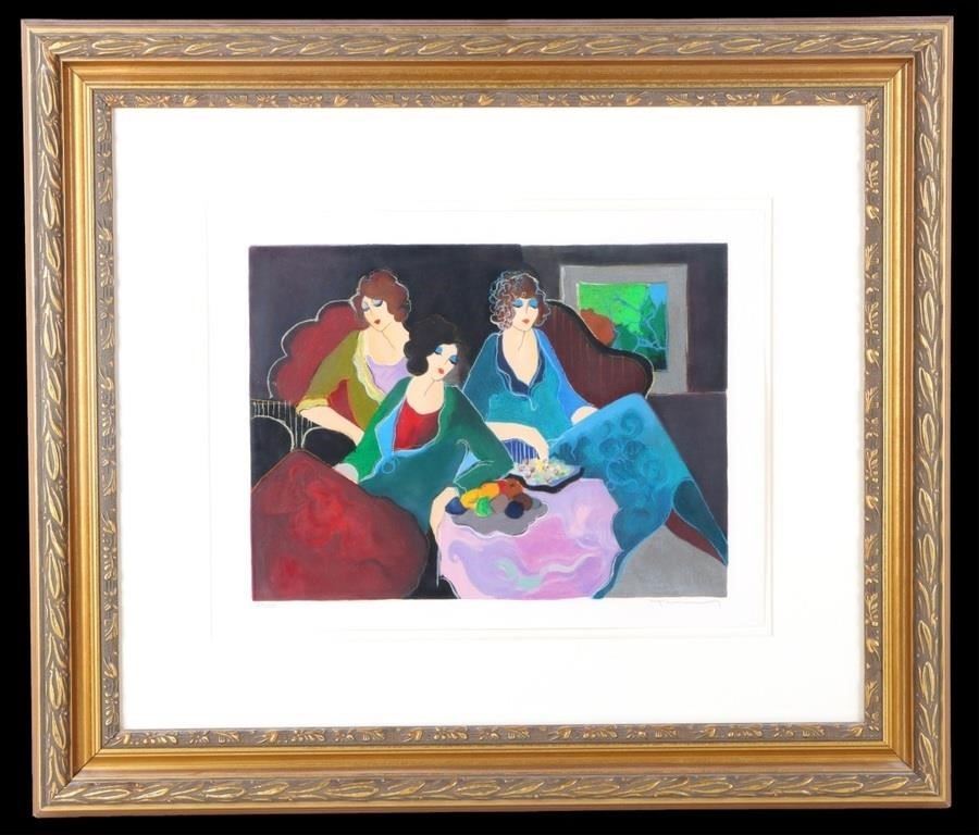 Itzchak Tarkay Printer proof (PP) hand-signed limited edition museum matted and framed serigraph titled & quot; Three Ladies at the Table& quot; 349/350