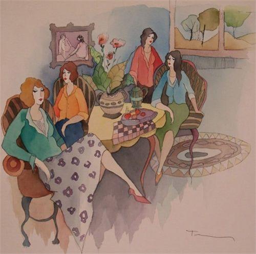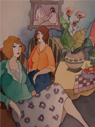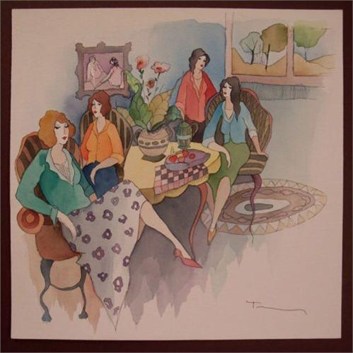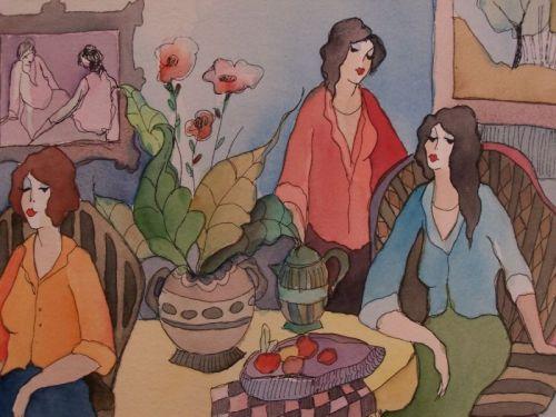 This beautiful watercolor is typical for the work of the successful artist Izchak Tarkay. The colors are fresh and vivid.