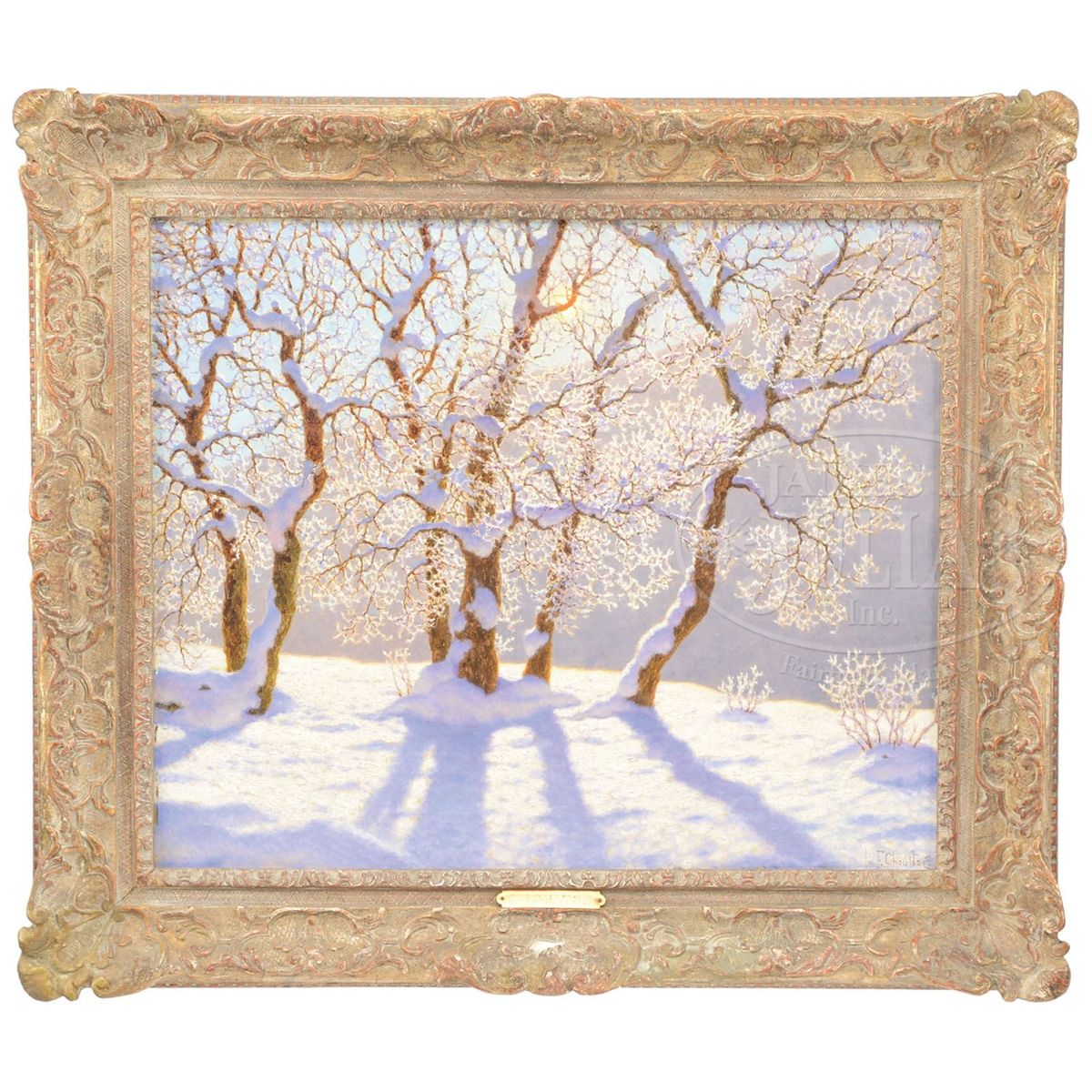 Oil on canvas Housed in its original French style gilt fancy frame with minor loss, with name plaque Signed lower right "IW.F. Choultse" Choultse was born in Petrograd, Russia, and as testament to his talent became court painter to Czar Nicholas II. After the Russian Revolution the artist moved to Paris, where he continued to paint Russian landscapes, but added to this repertoire the snowcapped mountains and scenery of Switzerland. Best known for these beautifully delineated scenes, Choultse became a master at capturing the subtle nuances of light on snow. SIZE: 21-1/2" x 25-3/4". Overall: 29" x 33". PROVENANCE: From a fine Augusta, Maine estate. CONDITION: Light craquelure, very good. 9-29219
