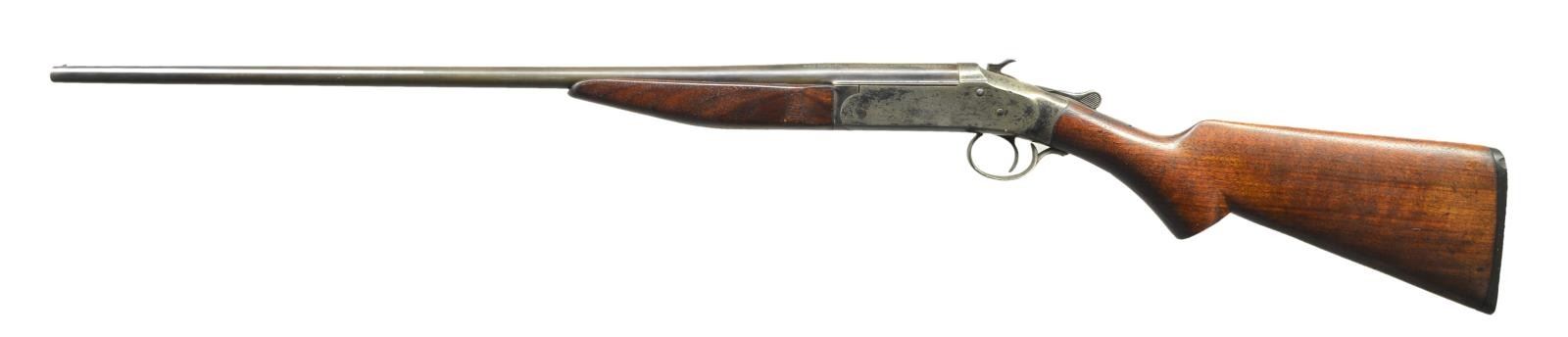 Cal. 410 GA. S# 3406D. Bbl.26" Mfg. 1909-1919. Iver Johnson single shot 410 shotgun. Full choke. Forged barrel & lug design. Exposed checkered hammer. Traditional rear break-open lever on rear tang. Hardwood stocks. Black plastic, serrated buttplate w/ Iver Johnson insignia. CONDITION: Barrel still retains the majority of blued finish w/ some thinning primarily over chamber. Receiver finish has thinned to silver / gold luster where dark finish has thinned. Front bead is present but flat. Bore is very shiny. (22-3247/JZ). CURIO. $50-100