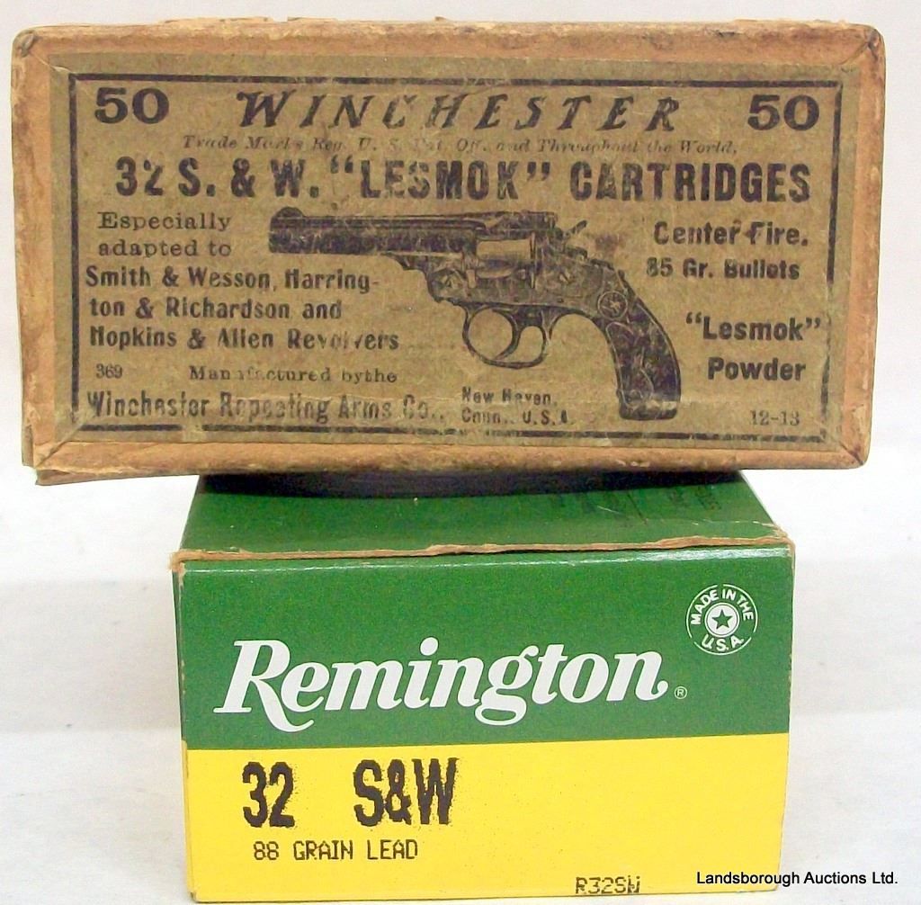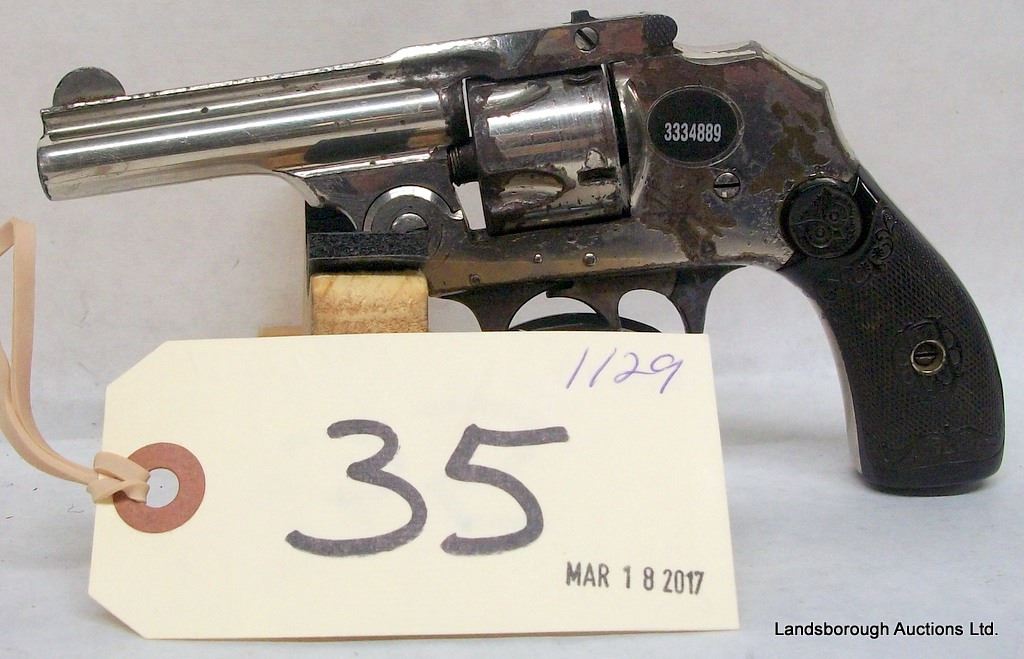 PROHIBITED, REVOLVER, 32 S&W, 76MM BARREL, SN B25367. GRIPS HAVE A CRACK, NICKEL PLATING LIFTING AND PITTED, BORE PITTED. COMES WITH 68 RNDS REMINGTON AND WINCHESTER 32 S&W. ONE VINTAGE BOX.