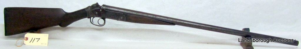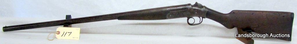 NON-RESTRICTED, SINGLE SHOT, 12GA, 30" BARREL WITH FIXED CHOKE, SN NONE. WOOD HAS GOUGES AND DENTS, CRACKED FOREARM, BLUING IS PITTED ALL OVER AND BROWN, BORE PITTED.