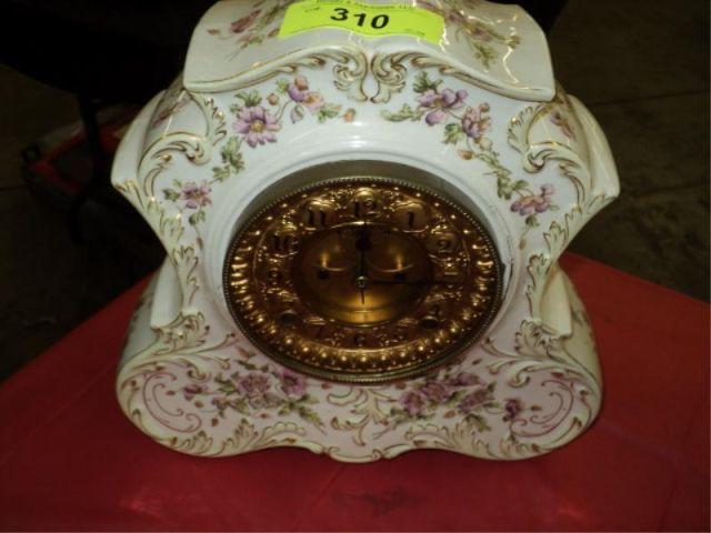 IVORY COLORED PINK FLOWER ANSONIA CLOCK {print sequence:} 27