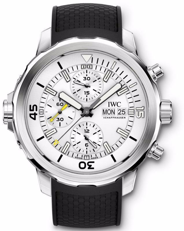 Model: IW376801 - CASE = [Material:Stainless Steel], [Case Diameter:44], [Case Thickness:17mm], [Bezel:Uni-Directional Rotating], [Case Back:Solid], [Water Resistant:300 Meters - 1000 Feet], [Crystal:Scratch Resistant Sapphire],; DIAL = [Color:Silver],; MOVEMENT = [Type:Automatic Self Winding Chronograph, 44- Hour Power Reserve], [Crown:Screw Down],; BAND = [Clasp:Tang], [Type:Black Rubber], (In Stock - Ready to ship.)