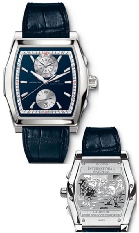 Model: IW376404 - CASE = [Material:Polished Stainless Steel], [Case Diameter:43.1], [Case Thickness:14.4mm], [Bezel:Fixed], [Case Back:Solid with engraved "The Laureus Sport for Good Foundation "], [Water Resistant:30 Meters / 100 Feet], [Crystal:Scratch Resistant Sapphire], DIAL = [Color:Blue with Date at 6], MOVEMENT = [Type:Automatic Self Winding], BAND = [Clasp:Deployment Buckle], [Type:Blue Crocodile Leather], (Usually ships in 1 to 2 weeks.)