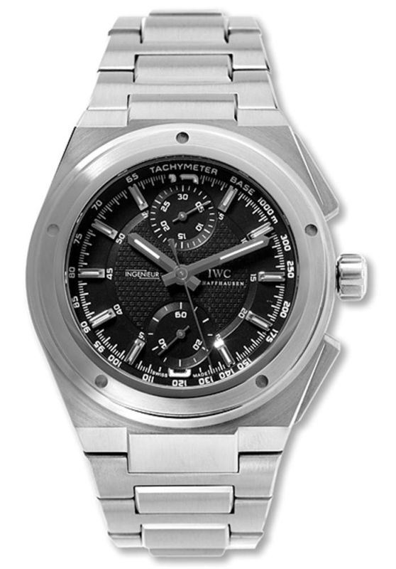 Model: IW372501 - CASE = [Material:Brushed Stainless Steel], [Case Diameter:42.5], [Case Thickness:13.5mm], [Bezel:Fixed], [Case Back:Solid], [Water Resistant:120 Meters / 400 Feet], [Crystal:Scratch Resistant Sapphire], DIAL = [Color:Black Guilloche], MOVEMENT = [Type:Automatic Self Winding Chronograph], [Crown:Screw Down], BAND = [Clasp:Deployment Buckle], [Type:Brushed Stainless Steel], (Usually ships in 2 to 4 business days.)