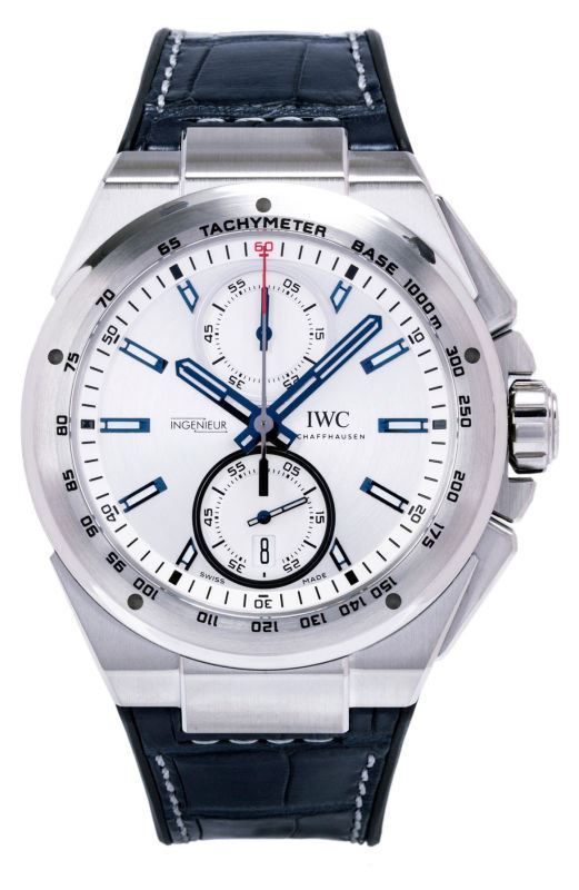 Model: IW378509 - Case,; MATERIALSTAINLESS STEEL = [Case Thickness14.5mm], [Water Resistant120 Meters / 400 Feet], [CrystalScratch Resistant Sapphire], Dial,; COLORSILVER = Movement,; TYPEAUTOMATIC SELF WINDING = Band,; TYPEBLUE LEATHER WITH CROCODILE PATTERN = (Usually ships in 1 to 2 business days.)