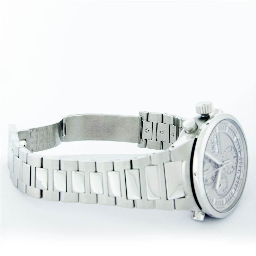 One Mens IWC Stainless Steel GST Rattrapante Split Second Chronograph Polished bright with Satin Finish, This Watch Has Been Serviced & Electronically Tested, Stainless Steel Case: 43mm, Stainless Steel Crown. Bezel: Stainless Steel Smooth Bezel, Crystal: Sapphire Crystal. Hands: IWC Silver Baton Markers, Movement: Handmade Swiss Automatic Movement. 3 Sub Dials: 60 Second, 30 Minute and 12 Hour Dial: IWC Grey Dial, Window: 3 O'Clock Position Date Display, Functions: Chronograph, Rattrapante, Date, Day, Hour, Minute, Small Second. Model : GST Split Second Chronograph Rattrapante. Condition: G-6 Extra Fine. Bracelet: Stainless Steel IWC GST Bracelet, Bright Polish & Satin Finish. 8.0 Inch Length, Adjustable. Stainless Steel IWC Deployant Clasp. This Watch Has Been Serviced Time Tested And Is In Excellent Condition, It Is Free Of All Scratches And Dents (Small Scratch On Original Crystal)