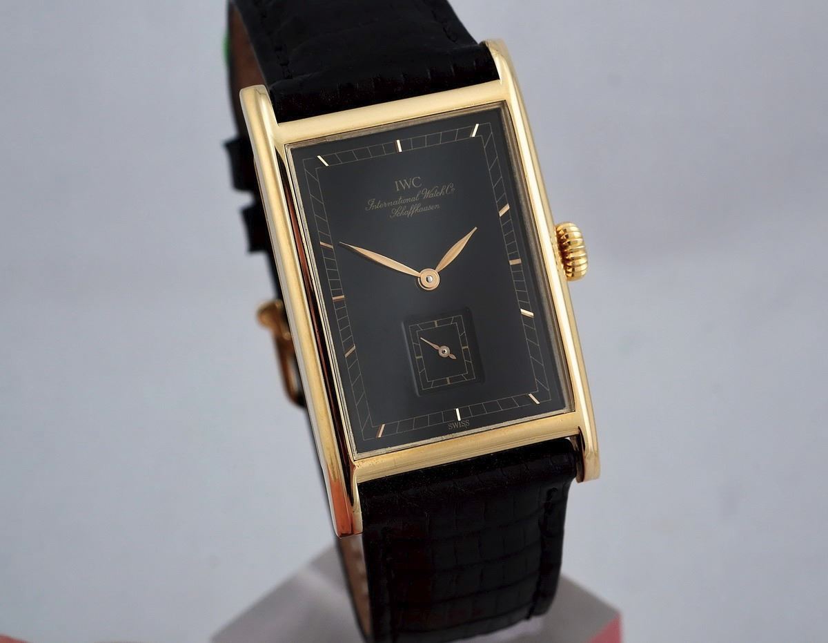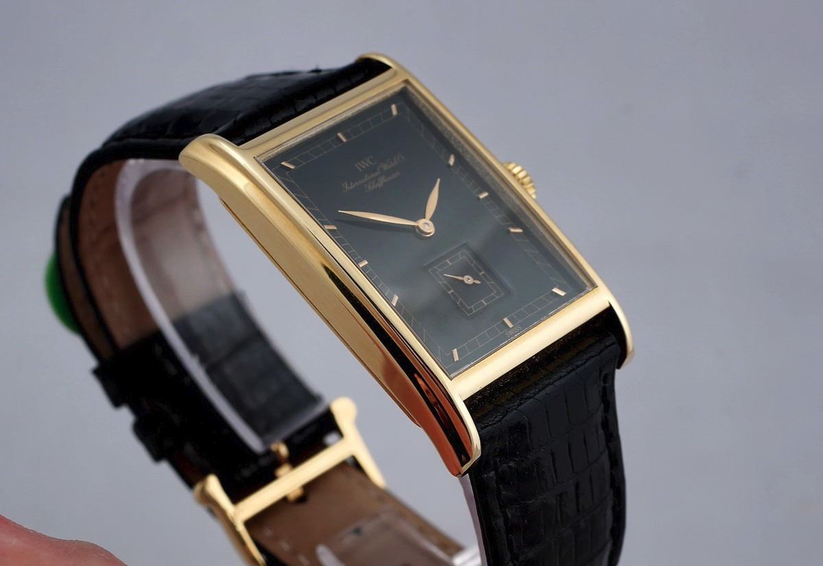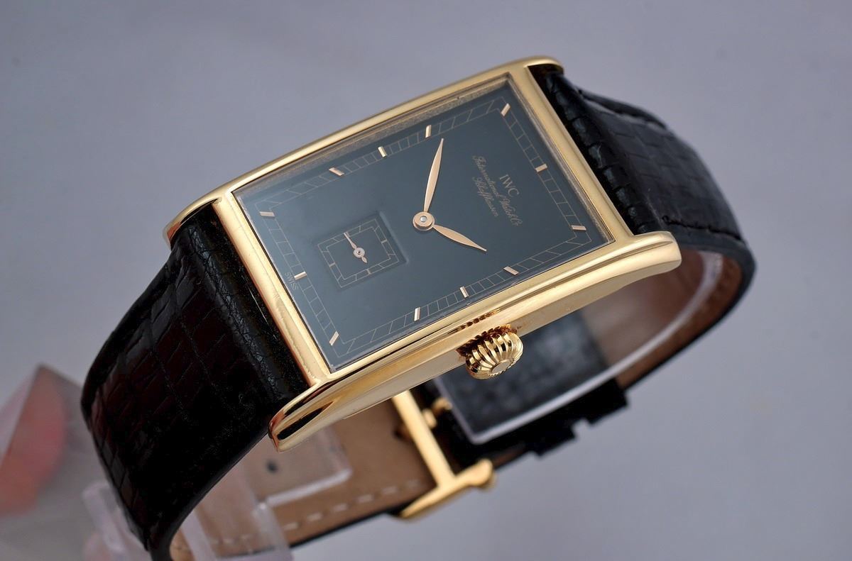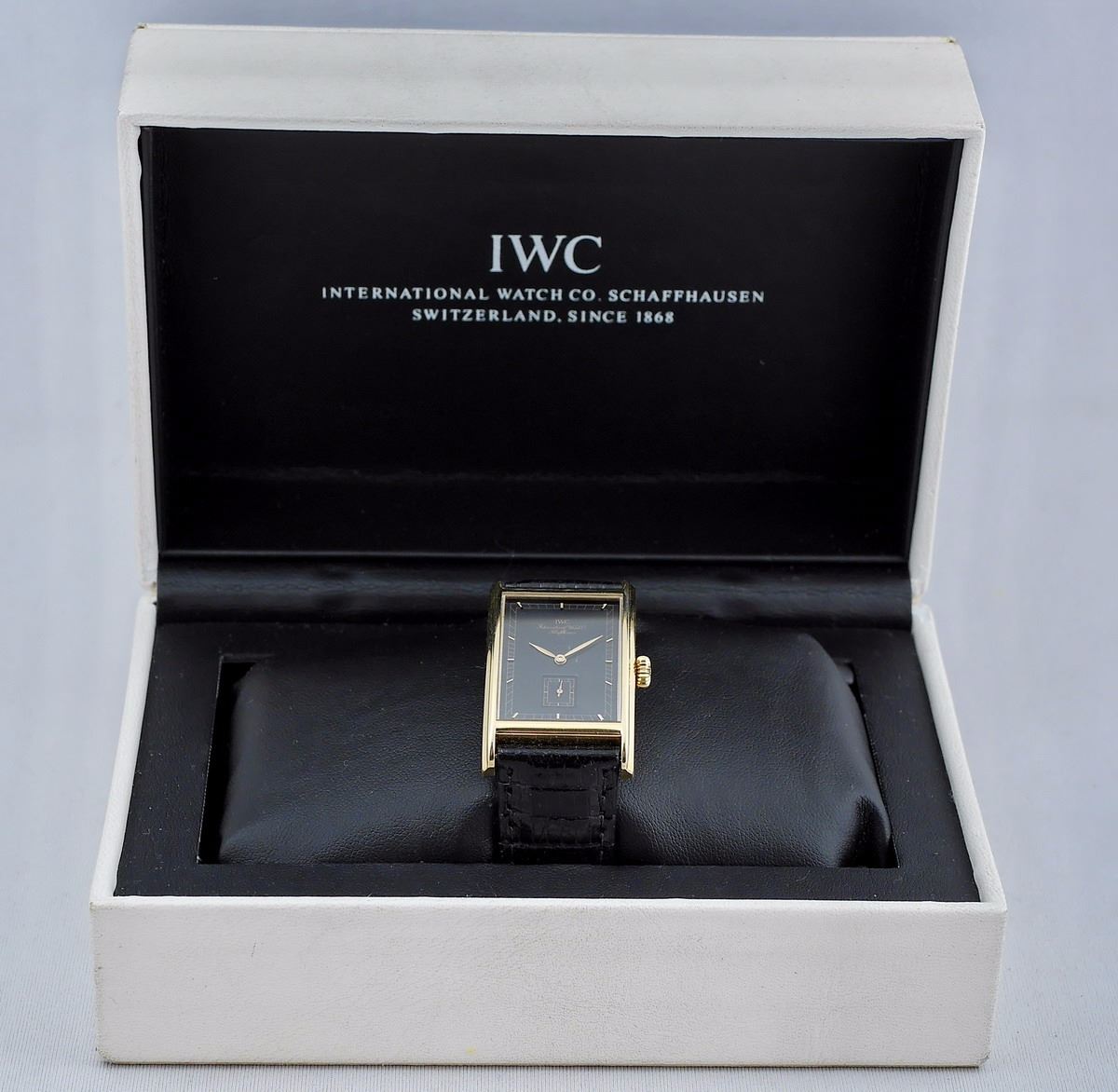 This is a hard to find discontinued model in a rare for IWC long rectangular-shaped nicely curved case, highly sought after by IWC aficionados.