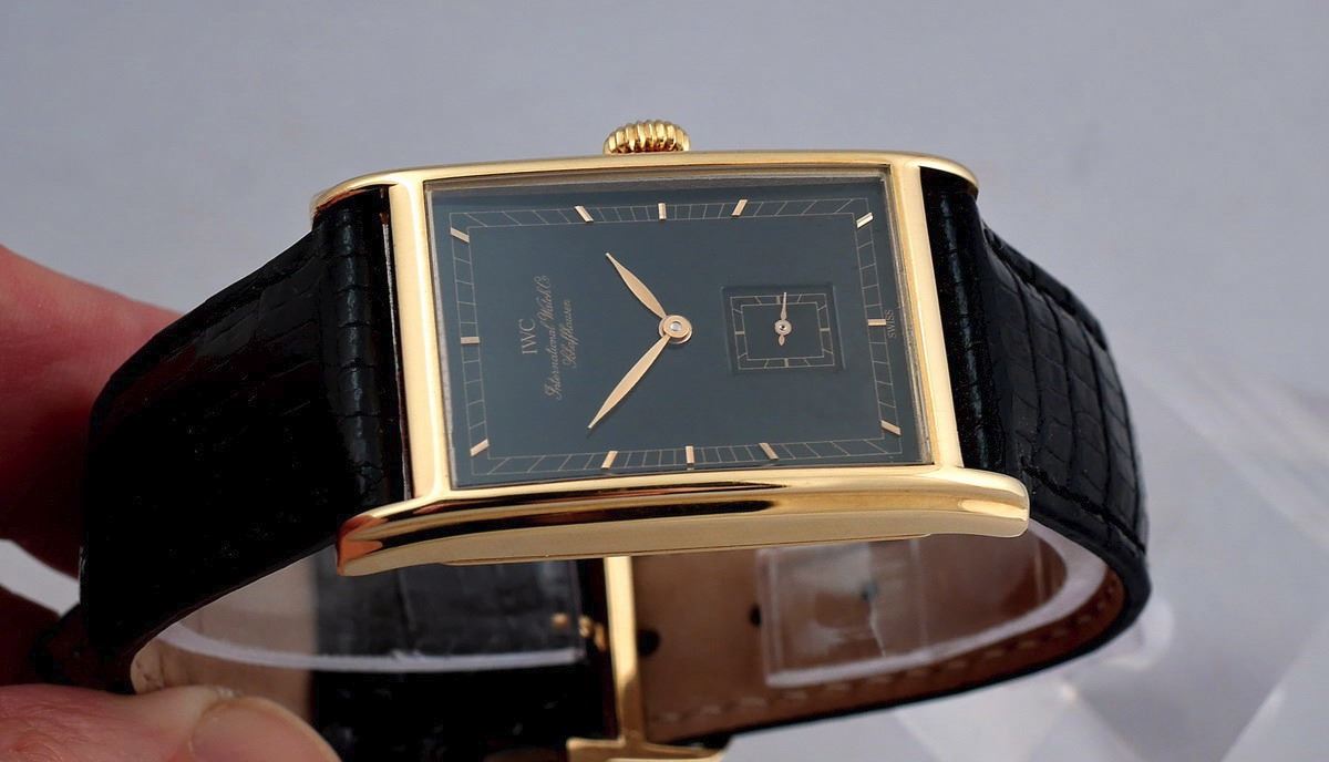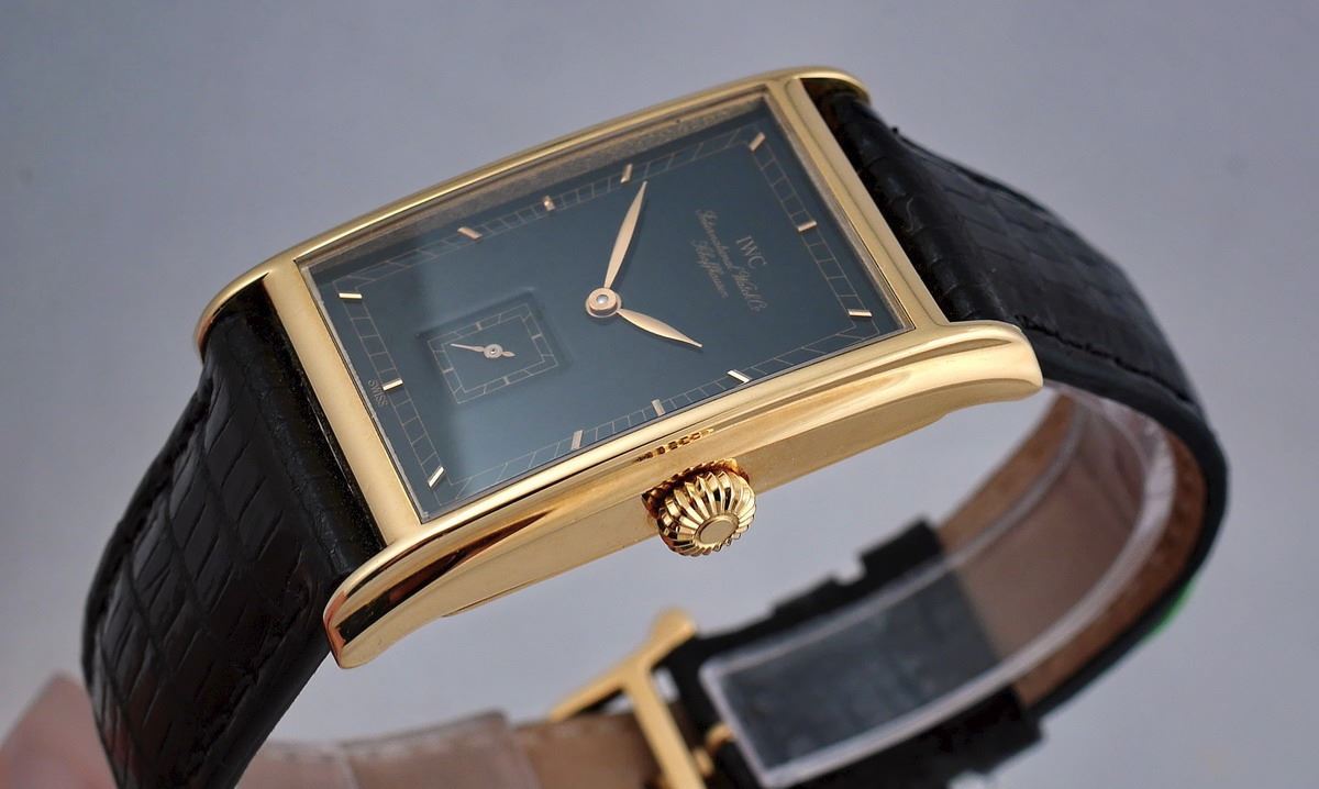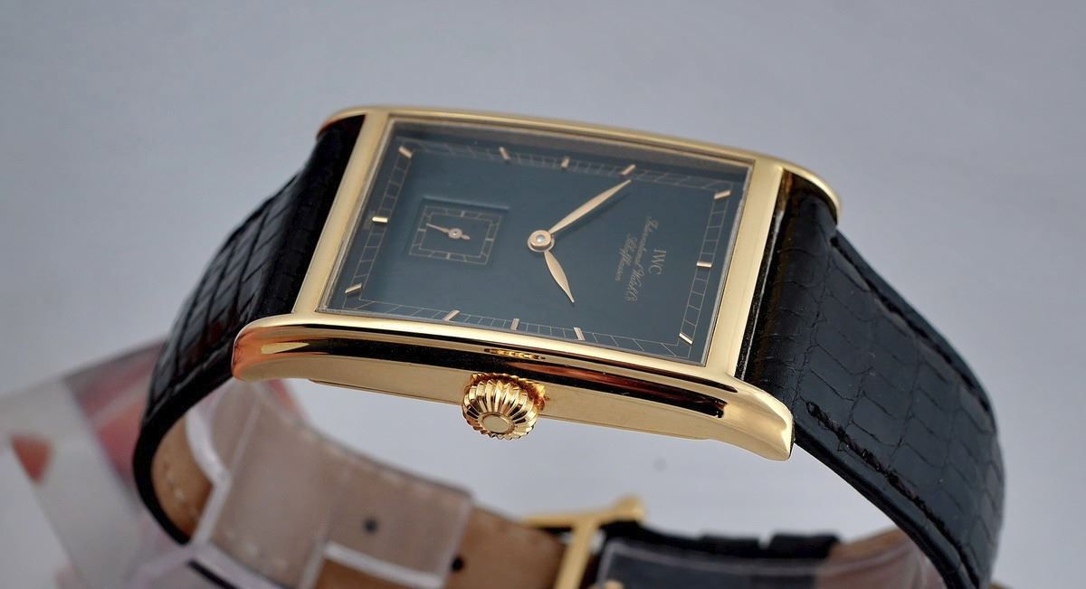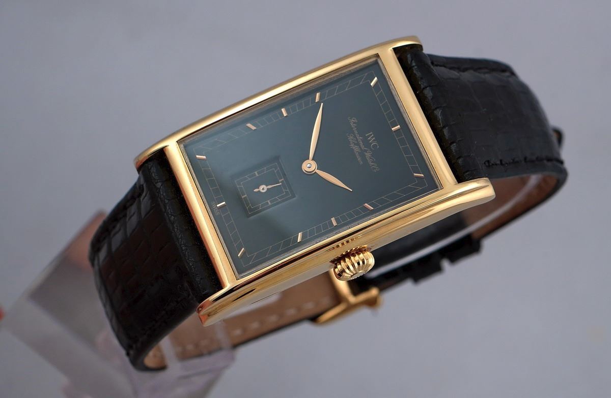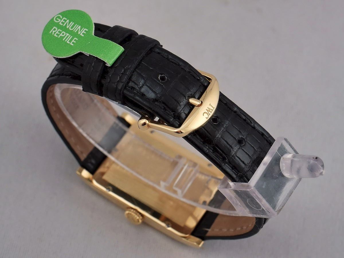 This is a hard to find discontinued model in a rare for IWC long rectangular-shaped nicely curved case, highly sought after by IWC aficionados.