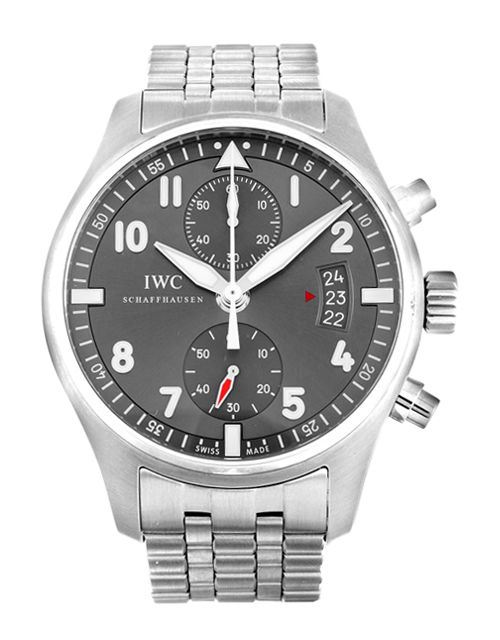 Model: IW387804 - Case,; MATERIALSTAINLESS STEEL = [Case Diameter43], [Case Thickness15.5mm], [Case BackSolid], [Water Resistant60 Meters - 200 Feet], [CrystalScratch Resistant Sapphire], Dial,; COLORGREY = Movement,; TYPEAUTOMATIC SELF WINDING CHRONOGRAPH = Band,; CLASPTANG BUCKLE = [TypeBrushed Stainless Steel], (Usually ships in 1 to 2 business days.)