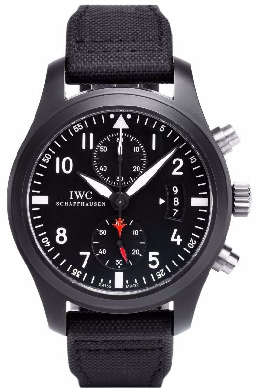 Model: IW388001 - CASE = [Material:Ceramic], [Case Diameter:46], [Case Thickness:16.5mm], [Case Back:Solid], [Water Resistant:60 Meters - 200 Feet], [Crystal:Scratch Resistant Sapphire],; DIAL = [Color:Black],; MOVEMENT = [Type:Automatic Self Winding Chronograph],; BAND = [Clasp:Deployant Clasp], [Type:Black Fabric], (Usually ships in 1 to 2 business days.)