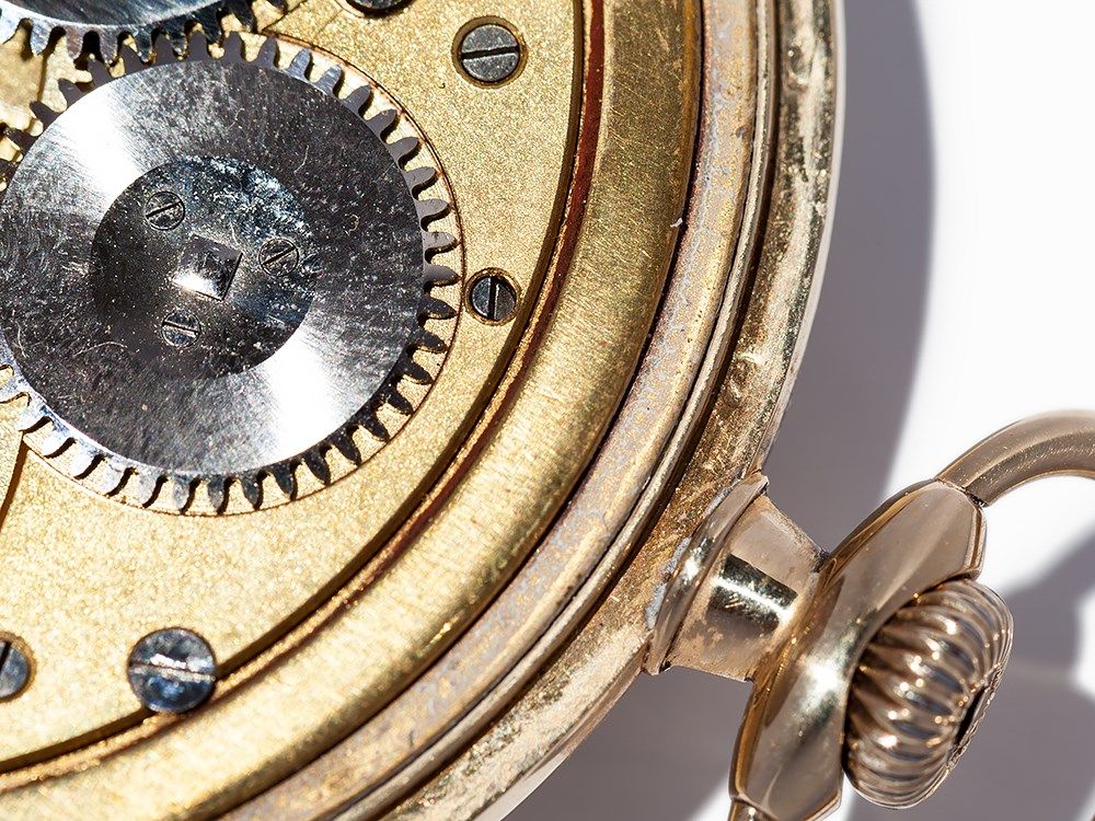 The watch case measures 48 mm in diameter and 10 mm in height. The pocket watch weighs 67 grams. The timepiece is in used to good condition with traces of wear. During in house testing the watch was fully functional. Long-term precision and regularity cannot be guaranteed. The watch ships with an excerpt from the archives and box from the period.