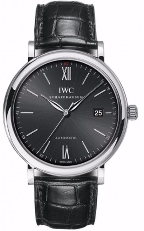 Model: IW356502 - CASE = [Material:Polished Stainless Steel], [Case Diameter:40], [Case Thickness:9.5mm], [Bezel:Fixed], [Case Back:Solid], [Water Resistant:30 Meters / 100 Feet], [Crystal:Scratch Resistant Sapphire],; DIAL = [Color:Black with Date at 3],; MOVEMENT = [Type:Automatic Self Winding],; BAND = [Clasp:Tang Buckle], [Type:Black Crocodile Leather], (In Stock - Ready to ship.)