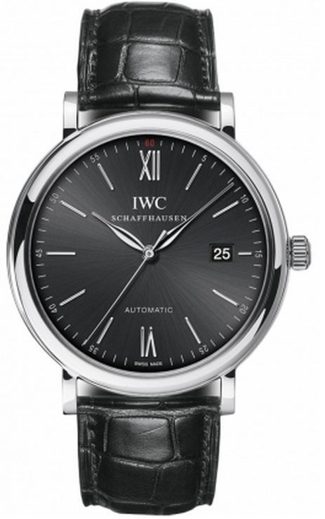Model: IW356502 - CASE = [Material:Polished Stainless Steel], [Case Diameter:40], [Case Thickness:9.5mm], [Bezel:Fixed], [Case Back:Solid], [Water Resistant:30 Meters / 100 Feet], [Crystal:Scratch Resistant Sapphire], DIAL = [Color:Black with Date at 3], MOVEMENT = [Type:Automatic Self Winding], BAND = [Clasp:Tang Buckle], [Type:Black Crocodile Leather], (In Stock - Ready to ship.)