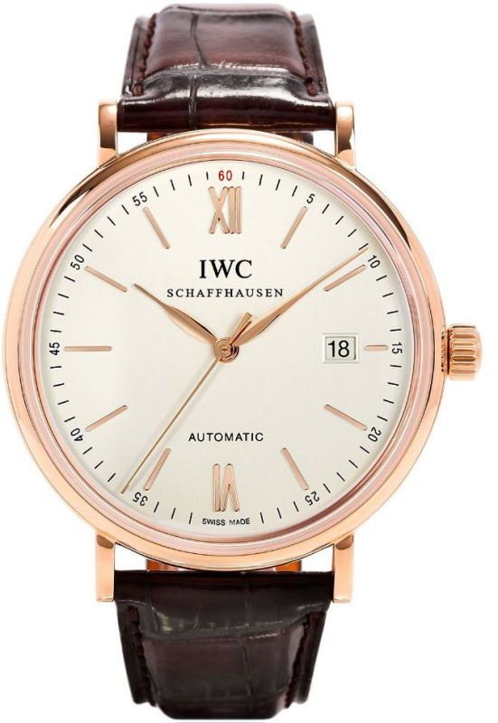 Model: IW356504 - CASE = [Material:18kt Rose Gold], [Case Diameter:40], [Case Thickness:9.5mm], [Case Back:Solid], [Water Resistant:30 Meters - 100 Feet], [Crystal:Scratch Resistant Sapphire], DIAL = [Color:Silver], MOVEMENT = [Type:Automatic Self Winding], BAND = [Clasp:Tang Buckle], [Type:Brown Crocodile Leather], (Usually ships in 1 to 2 business days.)