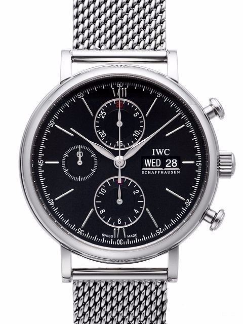 Model: IW391006 - CASE = [Material:Stainless Steel], [Case Diameter:42], [Case Thickness:13.5mm], [Bezel:Fixed], [Case Back:Solid], [Water Resistant:30 Meters / 100 Feet], [Crystal:Scratch Resistant Sapphire],; DIAL = [Color:Black Chronograph with Day and Date at 3],; MOVEMENT = [Type:Automatic Self Winding],; BAND = [Clasp:Tang Buckle], [Type:Mesh Stainless Steel], (Usually ships in 2 to 4 business days.)