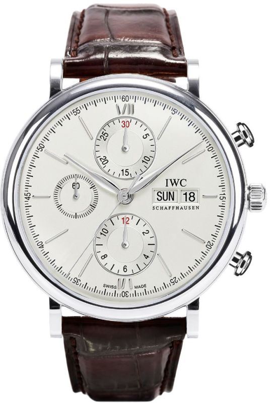 Model: IW391007 - CASE = [Material:Stainless Steel], [Case Diameter:42], [Case Thickness:13.5mm], [Case Back:Solid], [Water Resistant:30 Meters - 100 Feet], [Crystal:Scratch Resistant Sapphire], DIAL = [Color:Silver], MOVEMENT = [Type:Automatic Self Winding Chronograph], BAND = [Clasp:Tang Buckle], [Type:Brown Crocodile Leather], (In Stock - Ready to ship.)