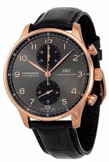 Model: IW371482 - CASE = [Material:18kt Rose Gold], [Case Diameter:40.9], [Case Thickness:12.3mm], [Case Back:Solid], [Water Resistant:30 Meters - 100 Feet], [Crystal:Scratch Resistant Sapphire],; DIAL = [Color:Grey],; MOVEMENT = [Type:Automatic Self Winding Chronograph],; BAND = [Clasp:Tang Buckle], [Type:Black Crocodile Leather], (Usually ships in 1 to 2 business days.)