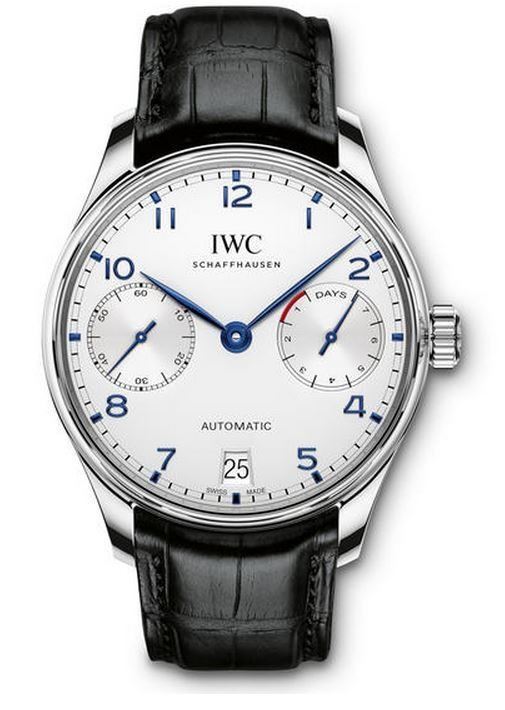 Model: IW500705 - CASE = [Material:Stainless Steel], [Case Diameter:42.3], [Case Thickness:14.5mm], [Bezel:Fixed], [Case Back:Skeleton], [Water Resistant:30 Meters - 100 Feet], [Crystal:Scratch Resistant Sapphire],; DIAL = [Color:Silver],; MOVEMENT = [Type:Pellaton Automatic Winding 7-Day Power Reserve], [Crown:Screw Down],; BAND = [Clasp:Deployment], [Type:Black Alligator Leather], (Usually ships in 1 to 2 business days.)