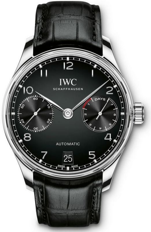 Model: IW500703 - CASE = [Material:Stainless Steel], [Case Diameter:42.3], [Case Thickness:14.5mm], [Bezel:Fixed], [Case Back:Skeleton], [Water Resistant:30 Meters - 100 Feet], [Crystal:Scratch Resistant Sapphire], DIAL = [Color:Black], MOVEMENT = [Type:Pellaton Automatic Winding 7-Day Power Reserve], [Crown:Screw Down], BAND = [Clasp:Tang], [Type:Black Alligator Leather], (In Stock - Ready to ship.)