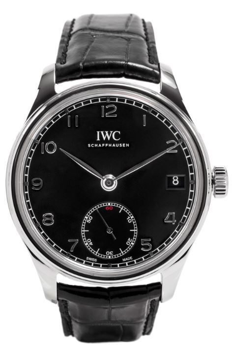 Model: IW510202 - CASE = [Material:Stainless Steel], [Case Diameter:43], [Case Thickness:12mm], [Bezel:Fixed], [Case Back:Solid], [Water Resistant:30 Meters - 100 Feet], [Crystal:Scratch Resistant Sapphire], DIAL = [Color:Black], MOVEMENT = [Type:Automatic Mechanical], [Crown:Push Down], BAND = [Clasp:Tang], [Type:Black Leather],  (Usually ships in 1 to 2 business days.)