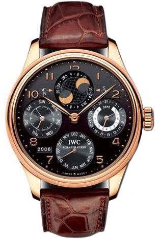 Model: IW502122 - CASE = [Material:18kt Rose Gold], [Case Diameter:44.2], [Case Thickness:15.5mm], [Case Back:See-thru Sapphire crystal], [Water Resistant:30 Meters - 100 Feet], [Crystal:Scratch Resistant Sapphire], DIAL = [Color:Black], MOVEMENT = [Type:Automatic Self Winding], BAND = [Clasp:Deployment Buckle], [Type:Brown Crocodile Leather], (Usually ships in 2 to 4 business days.)