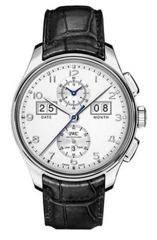 Model: IW397201 - CASE = [Material:Stainless Steel], [Case Diameter:45], [Bezel:Fixed], [Case Back:Skeleton], [Water Resistant:30 Meters - 100 Feet], [Crystal:Scratch Resistant Sapphire], DIAL = [Color:White], MOVEMENT = [Type:Self Winding Automatic, 68 Hour Power Reserve, Perpetual Calendar], [Crown:Push In], BAND = [Clasp:Tang], [Type:Black Alligator Leather], (Usually ships in 1 to 2 weeks.)