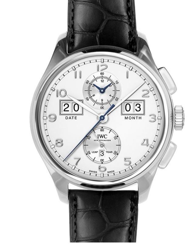 Model: IW397201 - CASE = [Material:Stainless Steel], [Case Diameter:45], [Bezel:Fixed], [Case Back:Skeleton], [Water Resistant:30 Meters - 100 Feet], [Crystal:Scratch Resistant Sapphire], DIAL = [Color:White], MOVEMENT = [Type:Self Winding Automatic, 68 Hour Power Reserve, Perpetual Calendar], [Crown:Push In], BAND = [Clasp:Tang], [Type:Black Alligator Leather], (Usually ships in 1 to 2 weeks.)