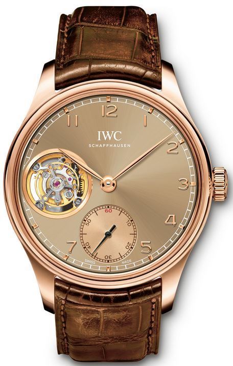 Model: IW546304 - CASE = [Material:18kt Rose Gold], [Case Diameter:43], [Case Thickness:11mm], [Bezel:Fixed], [Case Back:Skeleton], [Water Resistant:30 Meters - 100 Feet], [Crystal:Scratch Resistant Sapphire], DIAL = [Color:Champagne], MOVEMENT = [Type:Automatic Self Winding 54-Hour Power Reserve], [Crown:Push Down], BAND = [Clasp:Tang], [Type:Brown Alligator Leather], (Usually ships in 1 to 2 weeks.)