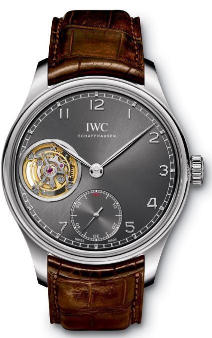 Model: IW546301 - CASE = [Material:Solid 18K White Gold], [Case Diameter:43], [Water Resistant:30 Meters / 100 Feet], [Crystal:Scratch Resistant Sapphire], DIAL = [Color:Grey], MOVEMENT = [Type:Manual Winding], BAND = [Clasp:Tang Buckle], [Type:Brown Leather with Alligator Pattern],  (Usually ships in 1 to 2 business days.)