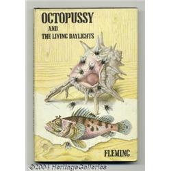 Ian Fleming - Group of Three James Bond First Editions, Thunderball (1961), On Her Majesty's Secret Service (1963), Octopussy and The Living Daylights (1965), London: Jonathan Cape, Ltd. Thunderball - 8vo, Black cloth binding with embossed skeletal hand on cover and gold lettering on spine. Condition: Very Good with some foxing at page edges. Dust Jacket: Good to Very Good with some minor flaking/tearing at top of spine and some minor discoloration at edges. On Her Majesty's Secret Service - 8vo, black cloth binding with white streak on cover and gold lettering on spine. Condition: Very Good. Dust Jacket: Good with several .5" tears at spine and some overall foxing/soiling. Octopussy and The Living Daylights - 8vo, black cloth binding with gold lettering on cover and spine. Condition:Very Good. Dust Jacket: Very Good with no discernible markings or tears. Offered here are three later-period James Bond novels, including the posthumously published Octopussy and The Living Daylights. The basis for one of the most successful film franchises in movie history, Ian Fleming's novels offered a deft blend of humor, adventure, and romance that continue to fascinate and entertain readers to this very day. British First Editions of these novels are often quite difficult to find, and amy collectors have to settle for the American firsts published by MacMillan. This is an excellent opportunity to begin or enhance you Bond holdings. 3 Coins Important notice: Heritage usually auctions material at the rate of 200-250 lots per hour. On some occasions eBay Live bid software or the Internet may not be able to keep up with the pace of the auction. We recommend placing a realistic absentee bid now as insurance to avoid disappointment. Occasionally the auctioneer may eliminate or reject an eBay Live bid, and the auctioneer may also reopen a lot after the close of the eBay live bidding (usually because we missed an audience bid), and may reject your bid even if it shows you as the winning bidder. By bidding via eBay Live, you agree that Heritage may award the lot to another bidder at its sole discretion under the circumstances described above or any other reasonable circumstances. Since eBay bids are not shown to us until we open the lot on the floor, we treat those bids just like floor bids. In most cases the floor responds before the eBay bid is presented to us, due to Internet lag time, so for consistency we have made it a policy that floor bids are always considered first over tie eBay live bids. Also please note that all Heritage lots purchased through eBay Live carry a 20% Buyer's Premium. Please make sure you read the Terms and Conditions before you bid.