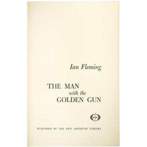 <B>Ian Fleming: <I>The Man with the Golden Gun</B></I></B></I> (New York; New American Library, 1965), first printing, 183 pages, black paper boards with white, red, and gilt titles, 8vo (5.75" x 8.5"), dust jacket. The book is in fine condition in a very good dust jacket with a sunned spine and a small tear to the front panel.<BR><BR><b>Shipping:</b> Books & Catalogs (<a target="_blank" href="http://www.heritageauctions.com/common/shipping.php">view shipping information</a>)