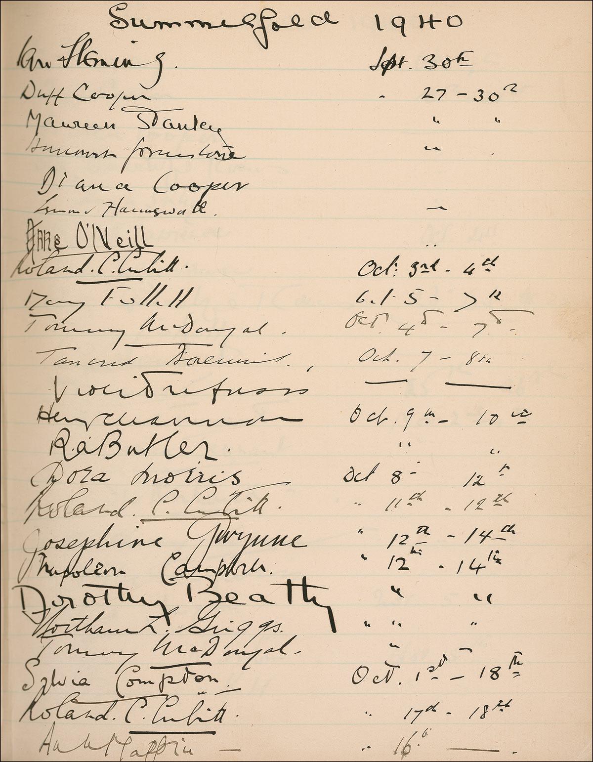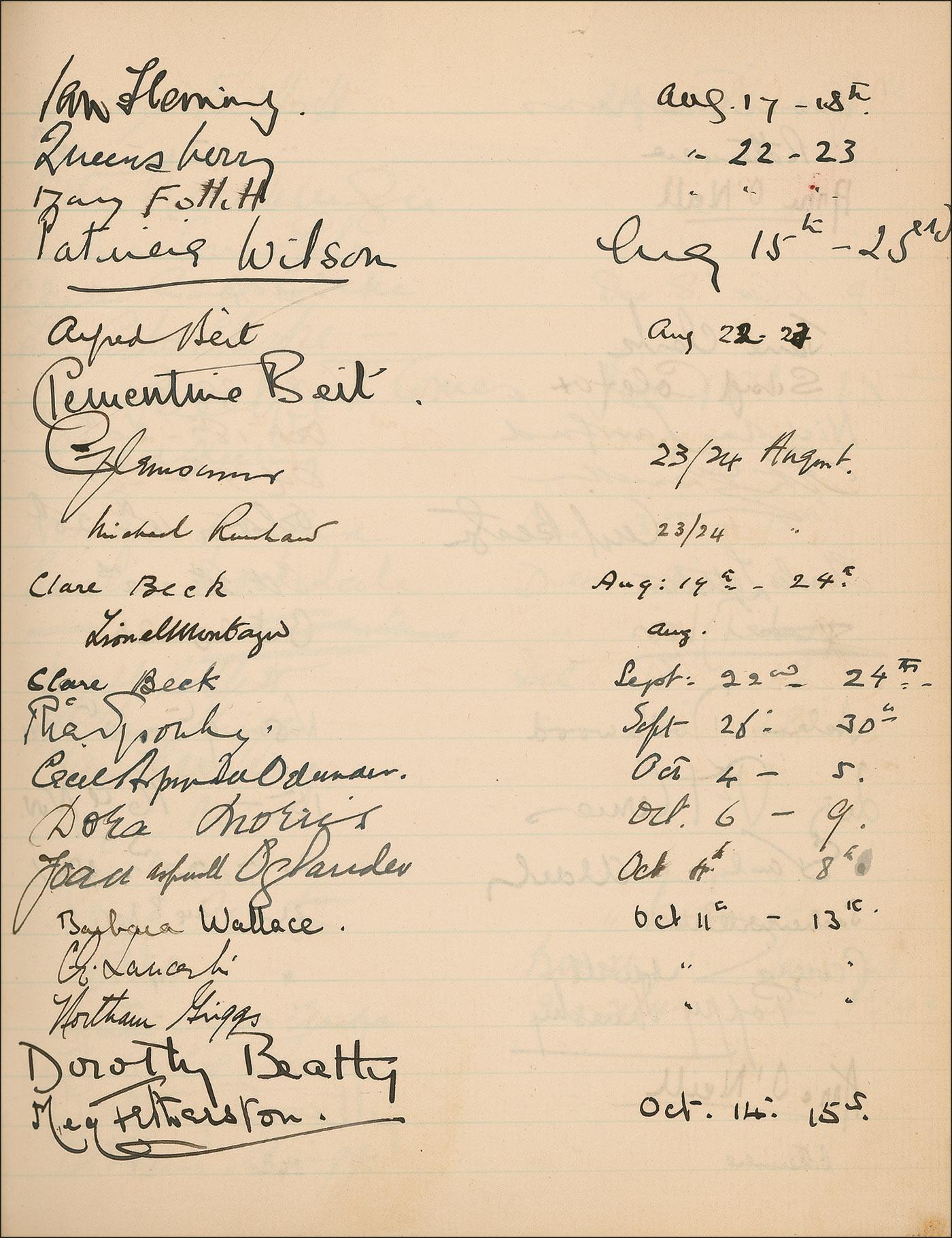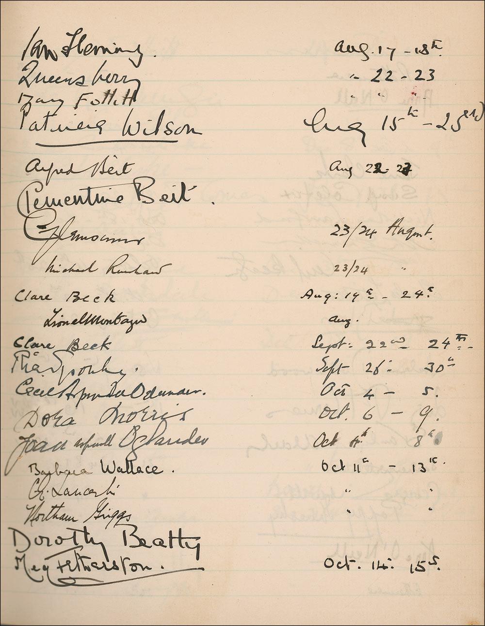 In addition to Ian Fleming’s unprecedented 26 signatures in this guest book, it also contains signatures of other famous personalities including: The Queen Mother, Noel Coward, and Cecil Beaton, each signing multiple times. This guest book belonged to Loelia Ponsonby, wife of the second Duke of Westminster, who was Fleming’s inspiration for James Bond secretary Miss Moneypenny. RRAuction COA.
