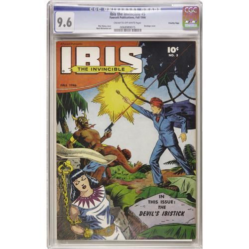 <B>Ibis The Invincible #5 Crowley Copy pedigree (Fawcett, 1946) CGC NM+ 9.6 Cream to off-white pages.</B></I> This issue sports a bondage cover by Mac Raboy and more interior art by Basil Wolverton. The highest graded copy certified by CGC to date, it's also the first one we've had the opportunity to offer. Overstreet 2006 NM- 9.2 value = $650. CGC census 10/06: 1 in 9.6, none higher.<BR><BR><b>Shipping:</b> Slabbed Comic (<a target="_blank" href="http://www.heritageauctions.com/common/shipping.php">view shipping information</a>)