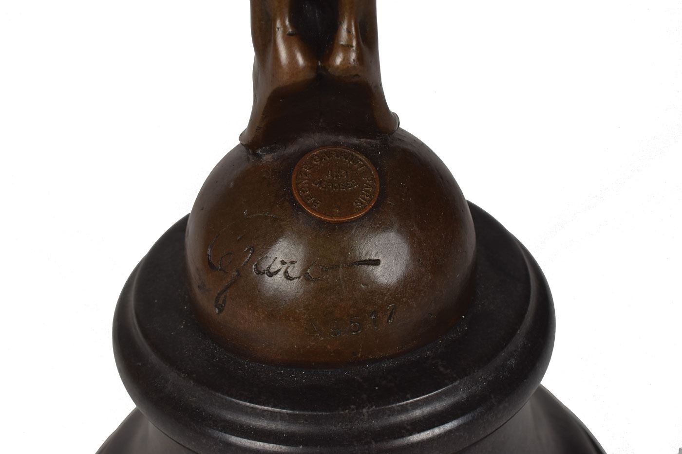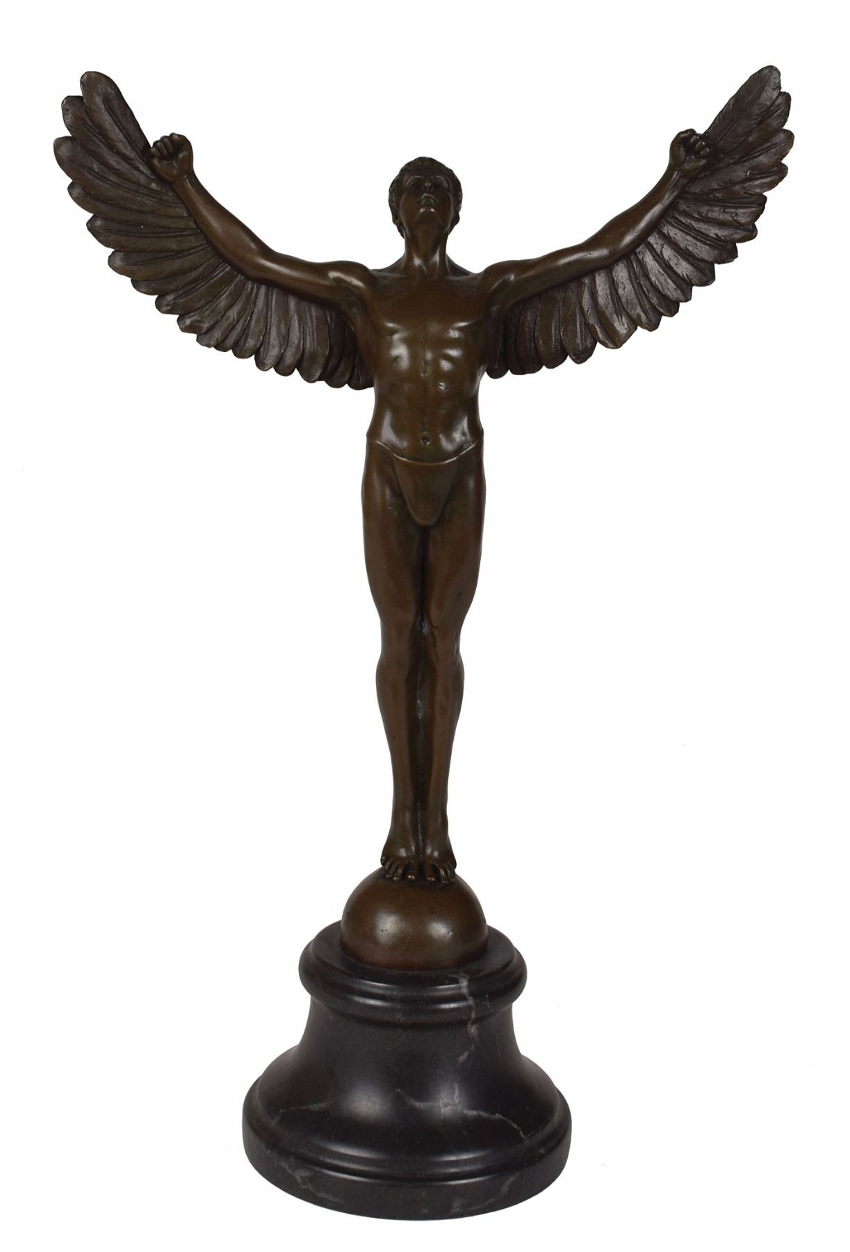 Bronze statue of Icarus, measuring an overall 16? tall with a wingspan of 10.5?, with a weight of 7.2 pounds, bearing a foundry mark on the base, "Bronze Garanti Paris, J. B. Deposee," stamped with the number "A9517." In fine condition.