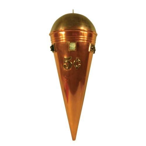 Soda Fountain trade sign in the shape of an ice cream cone. Copper, tin and jewels. Excellent condition. 26 inches tall.