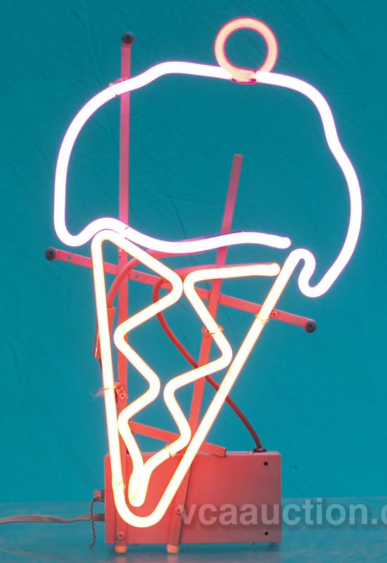 Ice Cream Cone w/ Cherry Neon Sign - 11" x 22"