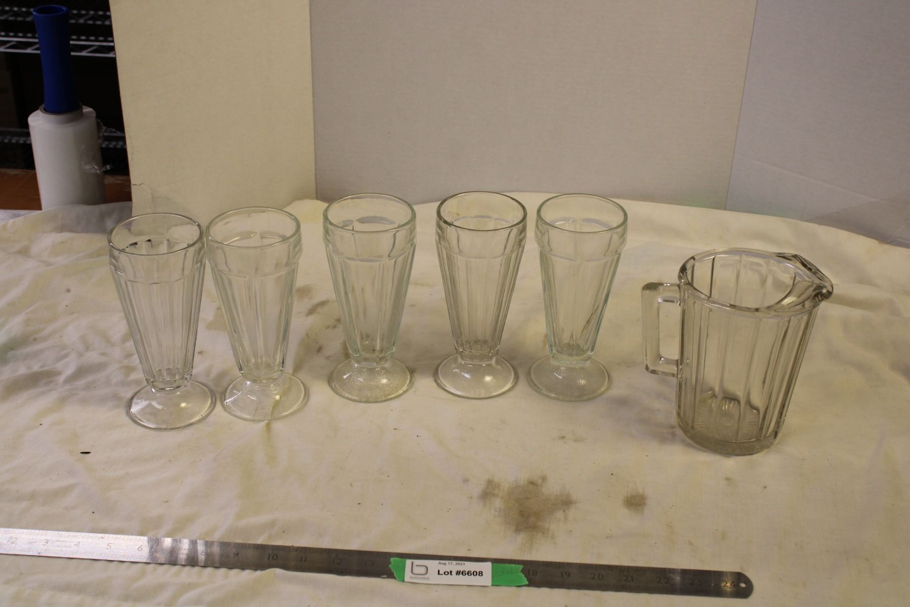 Ice Cream Sunday Glass and Clear Glass Pitcher