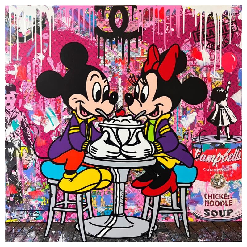 "Ice Cream for Two" is a unique mixed media acrylic on gallery wrapped canvas by Jozza. Hand Signed by the artist and titled in verso, the piece comes with a letter of authenticity. Measures approximately 40" x 40" (image).