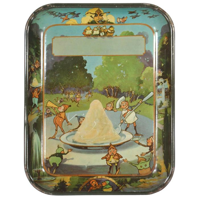 Ice Cream tray by H.D. Beach Co.-Coshocton, O, litho on tin w/Brownies serving ice cream, Exc cond, 13"H x 10.5"W.