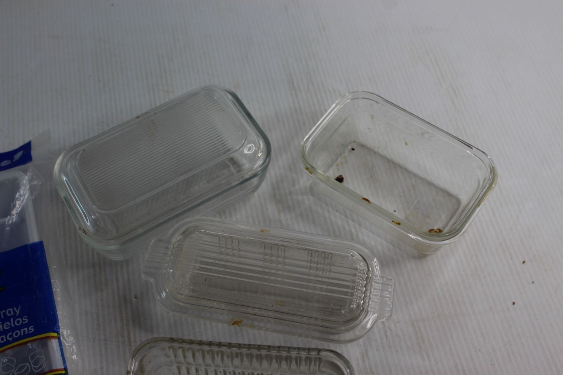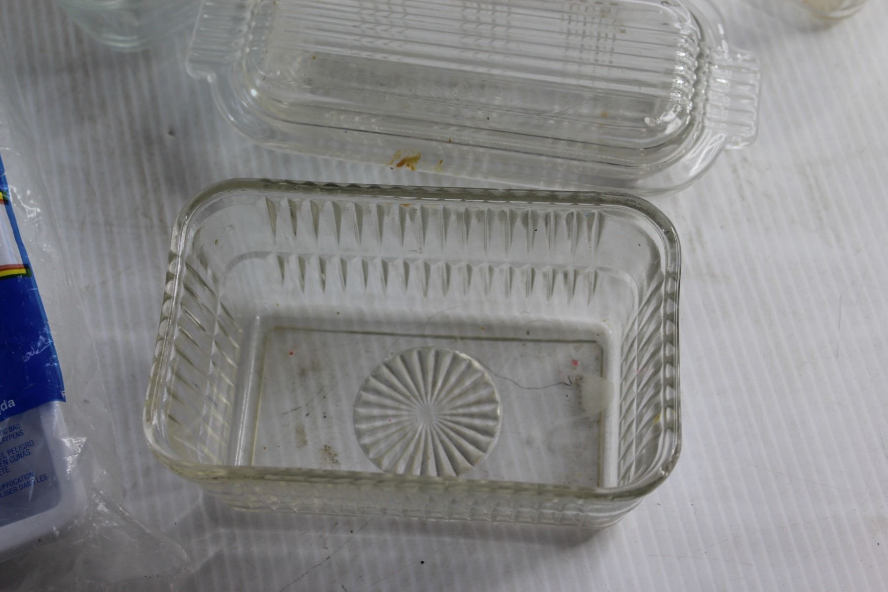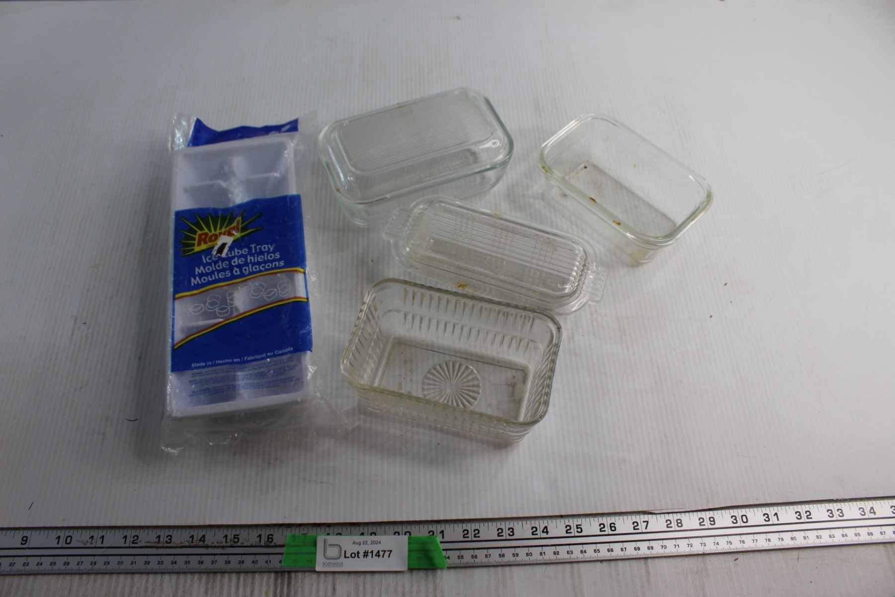 Ice Cube Tray and (4) Glass Butter Dishes