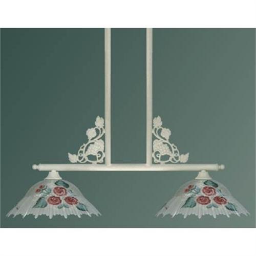 Height: 36" Width: 36" Extension: N/A Bulb: 2 - 100W Medium This island fixture is shown in Textured Bone finish. Seven other finishes are available. The crystal iced glass shades are beautifully reverse hand painted. OTHER HEIGHTS AVAILABLE: Add $35.00 Available Finishes Gilded Silver (GS) Rustique(RU) Textured Bone (BN) <img src="/finishes/textured-mauve.jpg" width="90" height="90" ...
