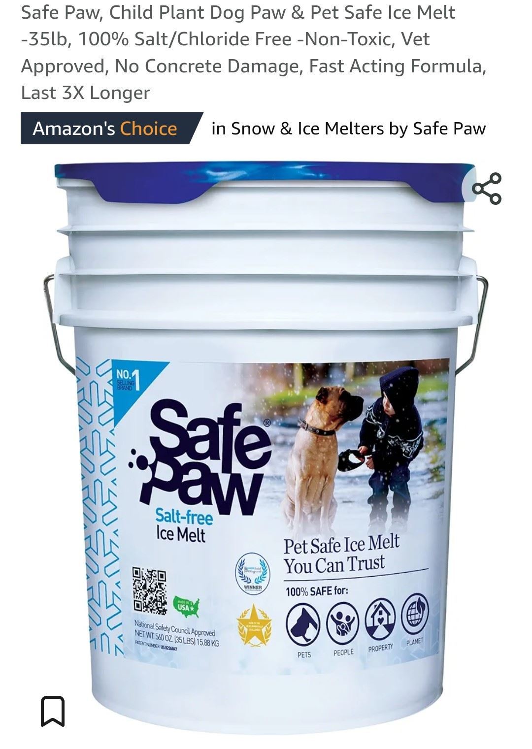 Non-toxic, pet-friendly ice melter, 35lb bucket, protects concrete, eco-conscious choice, new.