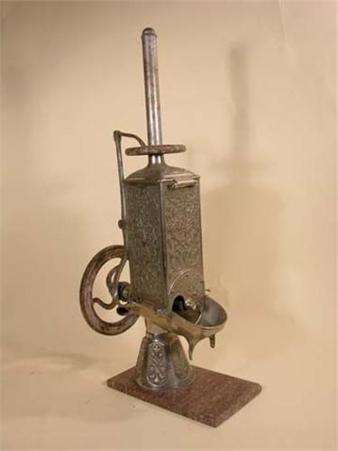 Ice Shaver - D.L. Bates & Bros. drug store , Dayton OH, Patent 1888, Star model. Nickel plated cast iron/marble base. Rare, 36" tall.