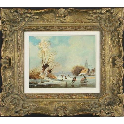 Keller (European) ?Ice Skating 2,? original oil on board.