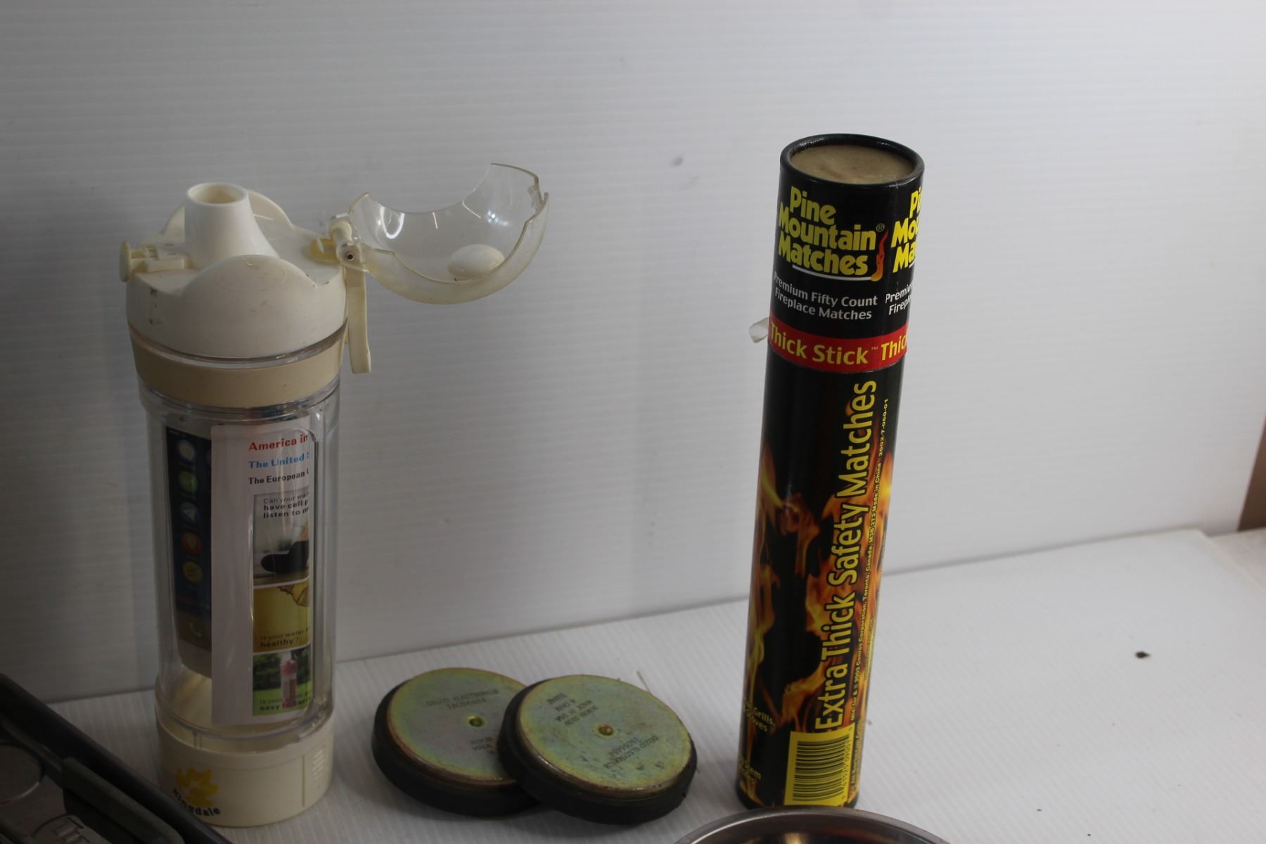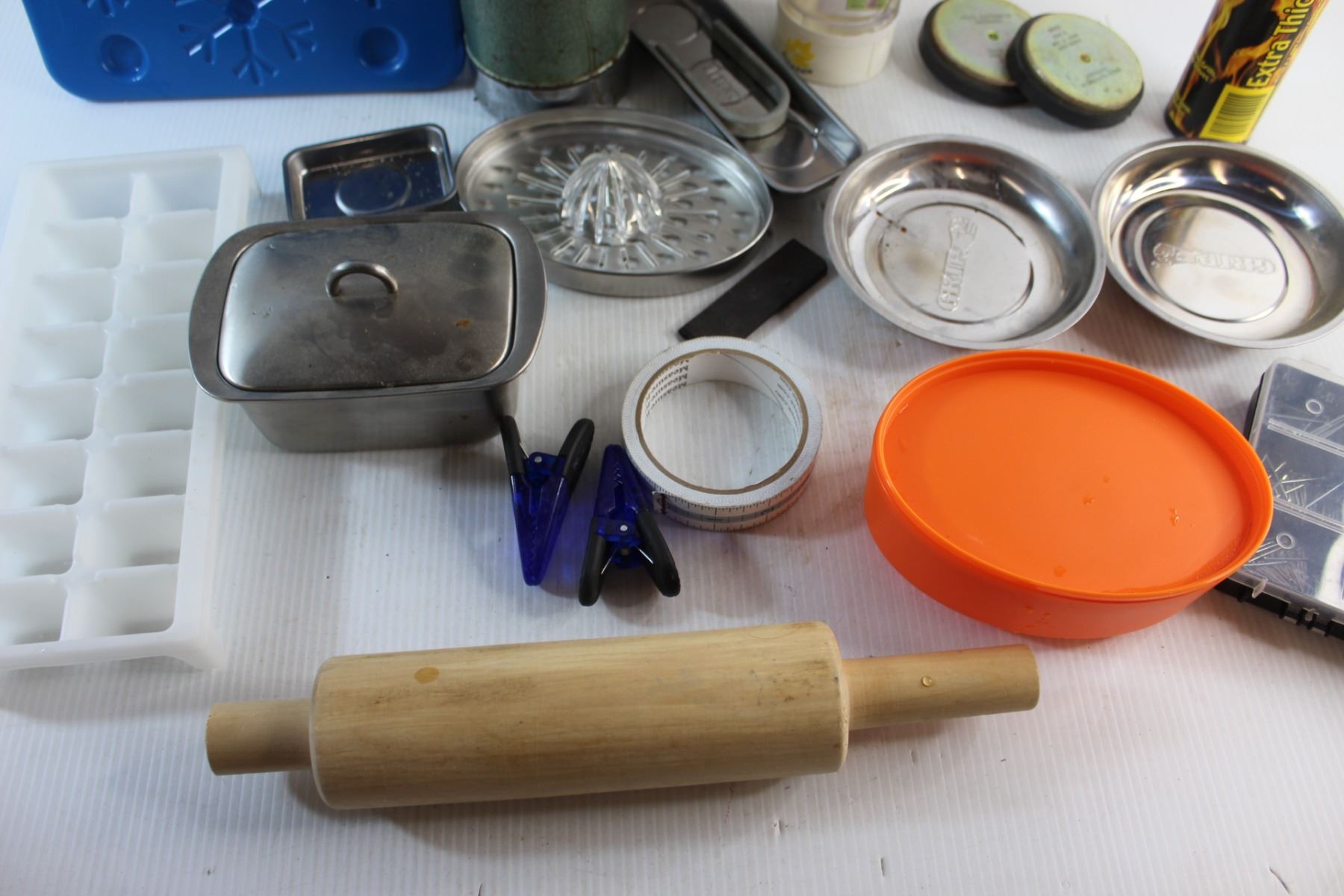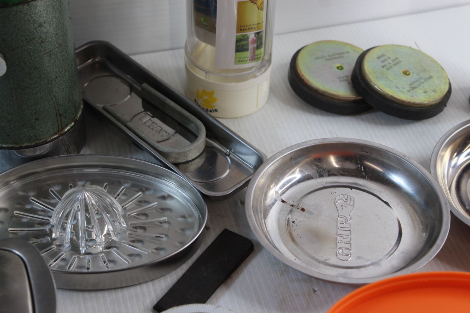 Ice Tray, Thermos, Magnets, Nails, Hand Juicer. Cold Pack and Assorted Items