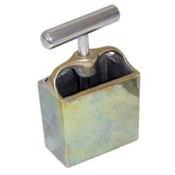 Ice cream sandwich maker, no markings, brass w/NP handle, tapered shape box, 5"H.