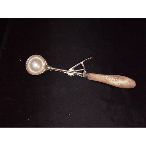 Ice cream scoop 10/3/4" long. Wood handle good condition.
