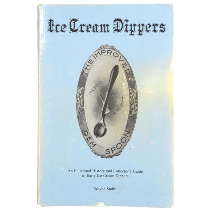 Ice cream scoops (4) & price guide; Erie Specialty Co. round bowl size 8, Quick & Easy conical bowl size 16, Quick & Easy round bowl size 6, Quick & Easy conical bowl size 16, all in VG cond w/wood handles & Ice Cream Dippers book by Wayne Smith, 183 pgs w/1991 price guide.
